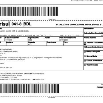 Ultimo boleto da faculdade